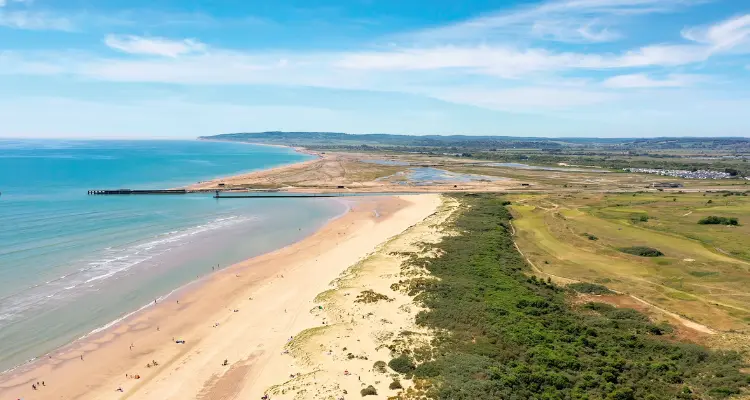 If you are searching for the closest beach to London that offers a bit of variety, Littlehampton is a top contender. It is unique because the River Arun splits the coastline into two very different sections. East Beach features the famous “Longest Bench in the UK” and the modern East Beach Café, while West Beach is a protected nature reserve with high sand dunes and a much quieter, wilder feel.